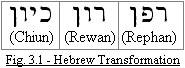 Now, with the first syllable of the word in Amos thereafter pronounced “Re” instead of a hard “C” (like K), the Yod would become unnecessary, hence it would drop out and we would be left with “Rewan.” In Hebrew, the “Vav” letter (the middle symbol in the middle word) is pronounced as both a “w” and a “v,” and through local differences in pronunciation, becomes an “f” or “ph.” This explains the Septuagint’s rendering, and shows the connection between Chiun and Rephan.