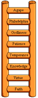 Faith, virtue (goodness), knowledge, temperance, patience, godliness, brotherly love, agape.